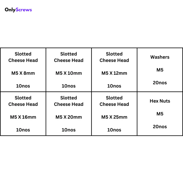 Simplify your fastening needs with the M5 Slotted Cheese Head SS304 Assorted Box, a convenient all-in-one solution featuring multiple screw lengths in a single organized kit. Ideal for professionals and DIY users, this assortment ensures you always have the right size on hand for different applications.