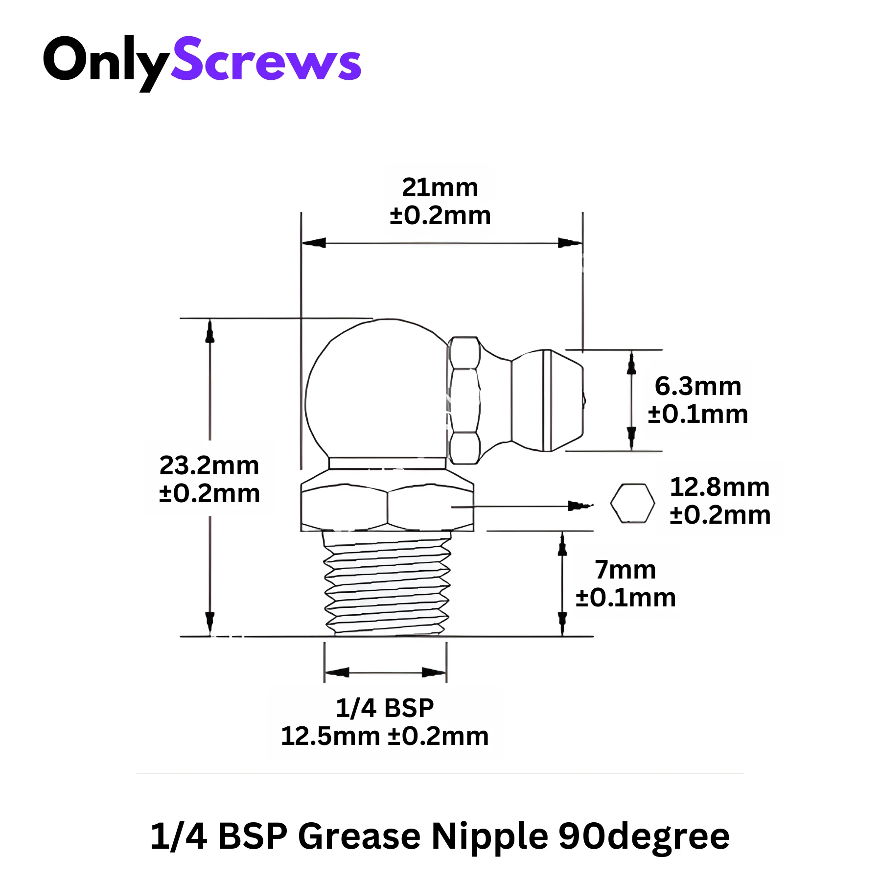 1/4 BSP Grease Nipple 90° Mild Steel with Zinc Plating