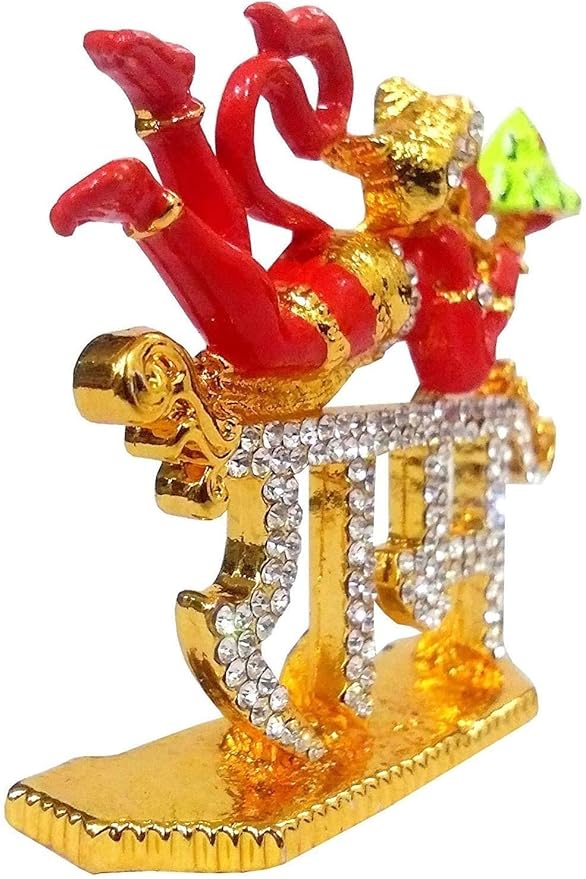 Expertly crafted from high-quality metal with a vibrant red finish, this idol showcases fine detailing and a bold spiritual presence. Its compact and sturdy design makes it perfect for placing on your car dashboard, home mandir, office desk, or (Pooja) space, bringing positivity and confidence into your daily life.