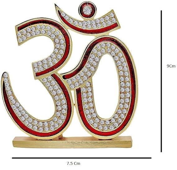 Shop NowHindu Religious Symbol Golden Om and Ik Onkar Guruji car Dashboard Metal Statue for Car Dashboard | Mandir Pooja Murti | Home Decor | Office Showpiece (Golden) (Prince)