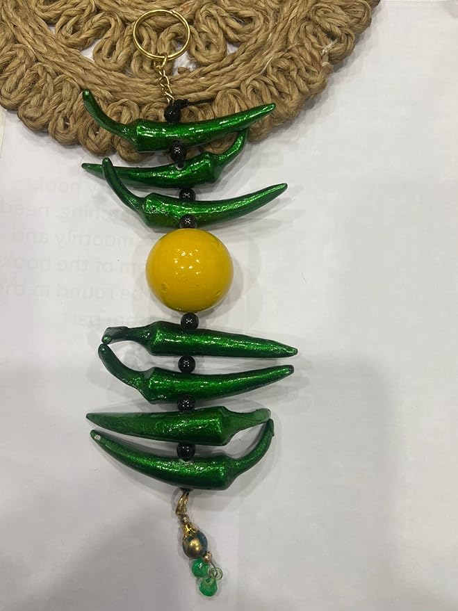 Ward off negative energy and invite positivity with this vibrant Metal Nimbu Mirchi Door Hanging. Featuring traditional green chilies and yellow lemons, this decorative piece is designed according to Indian customs to bring good luck, protection, and positive vibes to your home, office, or outdoor spaces.